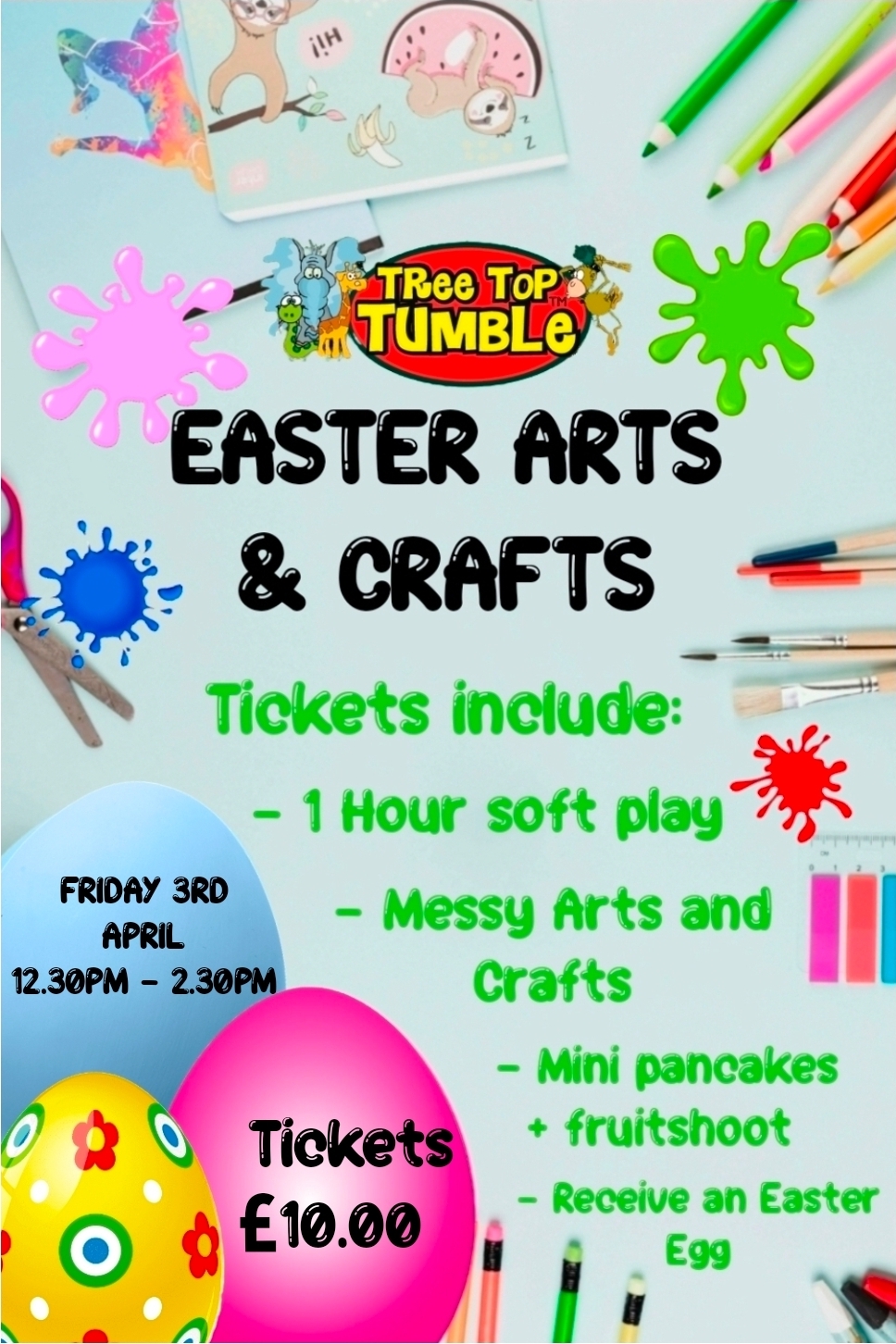 Friday 3rd April Easter Messy Arts and Crafts, Soft play and Lunch. Ages 3+ (recommended)